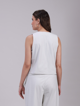 Off-white Relaxed A-line Sleeveless Vest with Patch Pockets- 3069