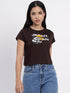 Black crop top featuring a Japan rising sun typo print, designed in a regular fit.